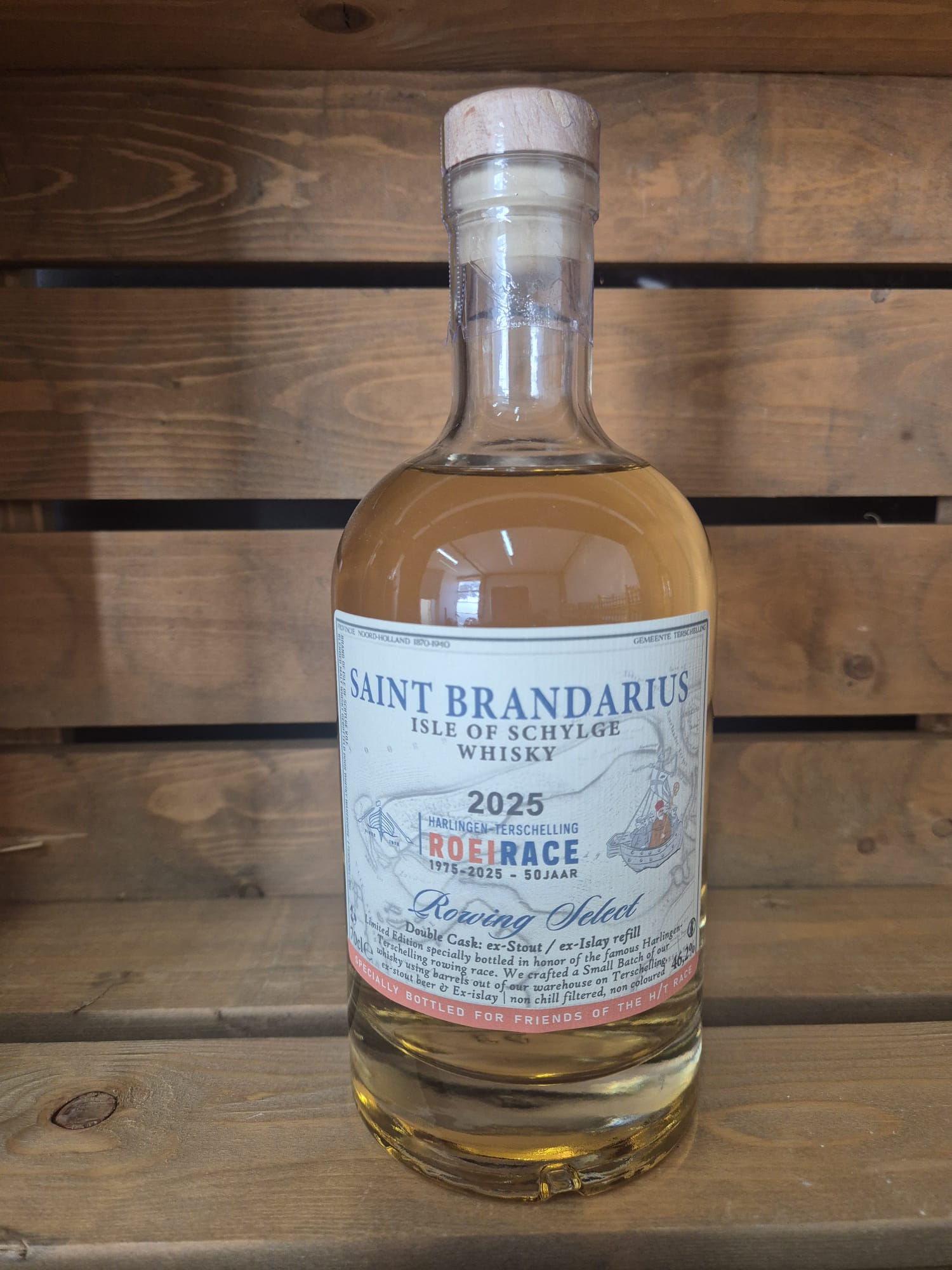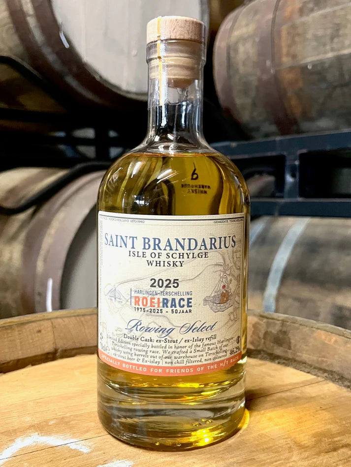 Voor het eerst in de geschiedenis van de Saint Brandarius Whisky een ex-stout bier cask! Deze whisky is gelagerd en gebotteld op Terschelling. Ieder jaar wordt er een unieke release ter ere van de Harlingen-Terschelling Roeirace gebotteld.